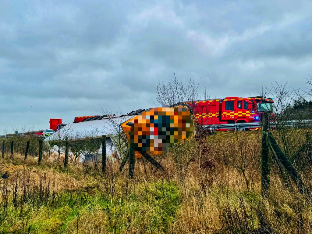Onsdag ved middagstid har en voldsom lastbilulykke fundet sted på motorvejen nær en rasteplads.