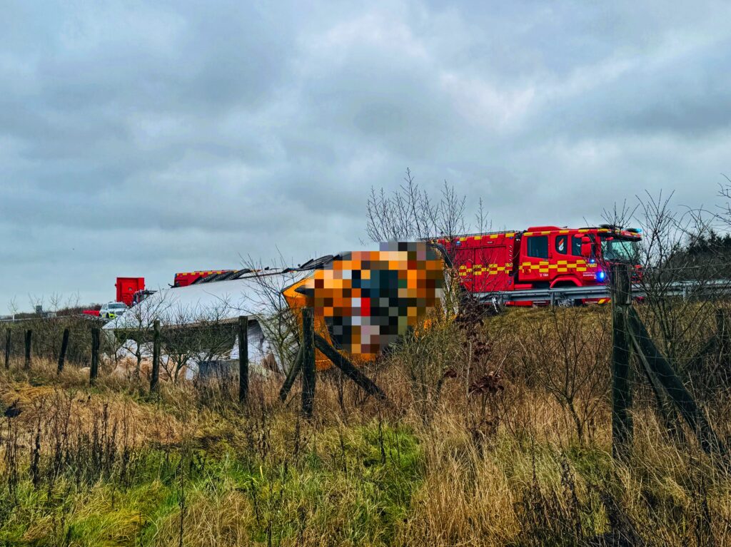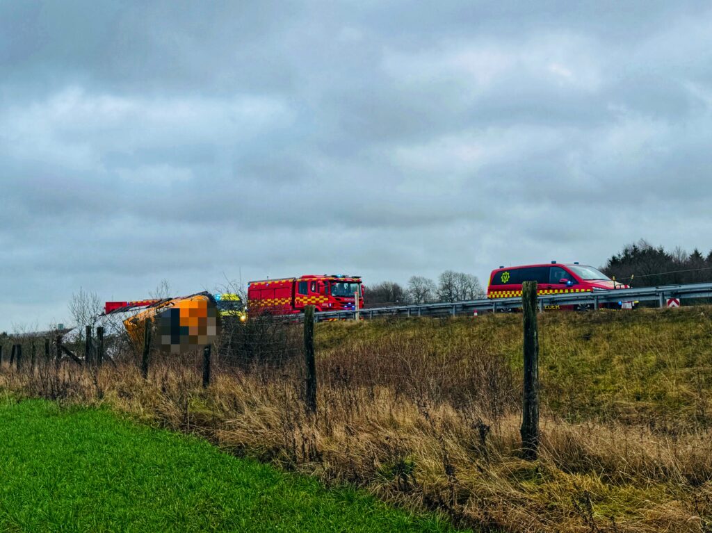 “Vi fik anmeldelsen klokken 12.02 om et solouheld med en lastbil. Føreren, der er en mand, er efterfølgende blevet kørt til kontrol på sygehuset, men der er ingen meldinger om alvorlig tilskadekomst,” siger han til Presse-fotos.dk.