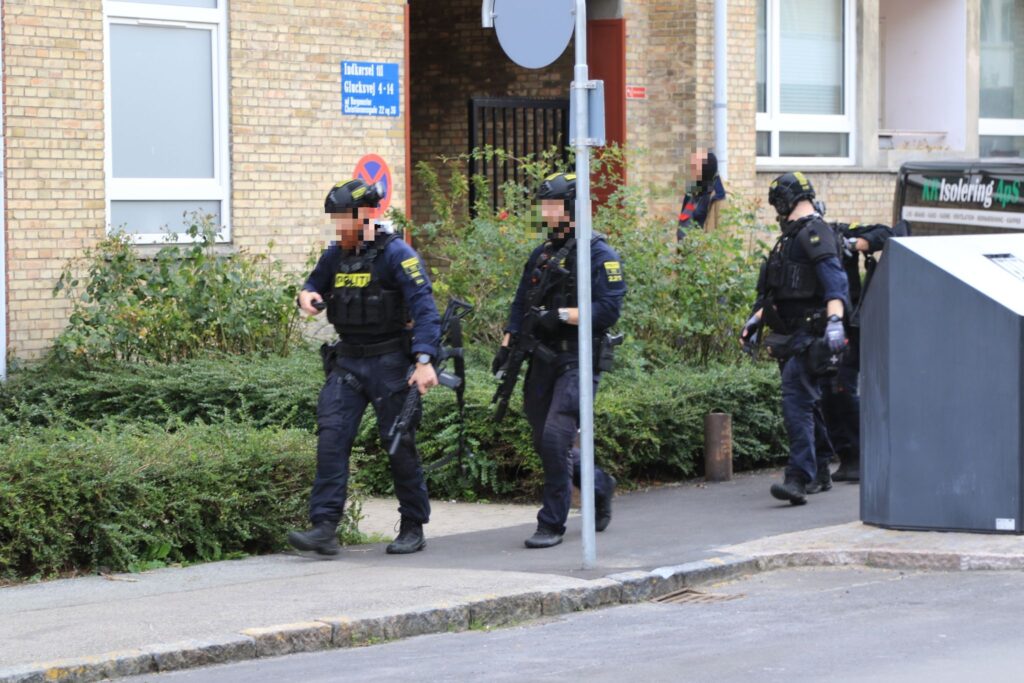 “Vi har været til stede i området efter at have fået et tip om skydevåben i lejligheden. Vi har været inde i lejligheden, hvor der er foretaget en ransagning – og her er der fundet en attrappistol,” siger vagtchef Henrik Stormer til Presse-fotos.dk.