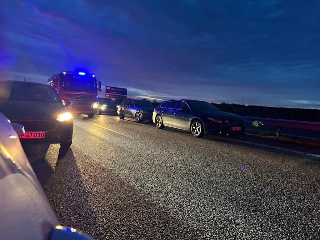 ‘Motorvejen er pt. spærret i vestgående retning. Politi og redning på vej,’ skriver Syd- og Sønderjyllands Politi på X. Kort efter fulgte endnu en melding: ‘Endnu et færdselsuheld i det østgående spor. 3 biler stødt sammen ved afkørsel 12.’