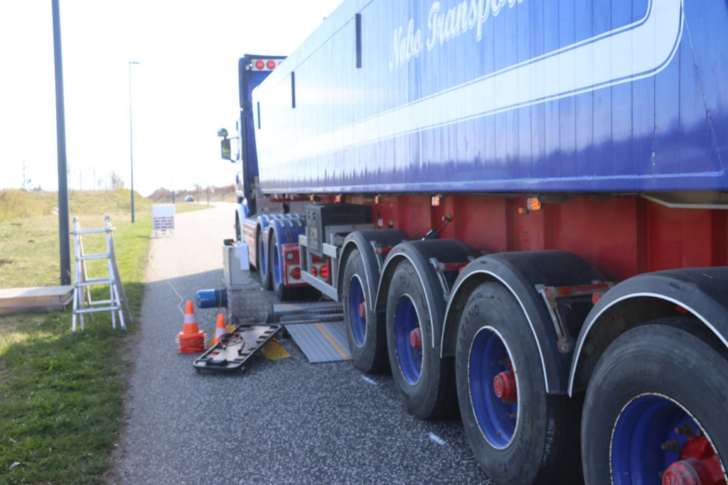 Torsdag middag er en række myndigheder herunder politiet til stede på en rasteplads langs en motorvejsstrækning, hvor der foretages kontroller af mange lastbiler og andre store køretøjer
