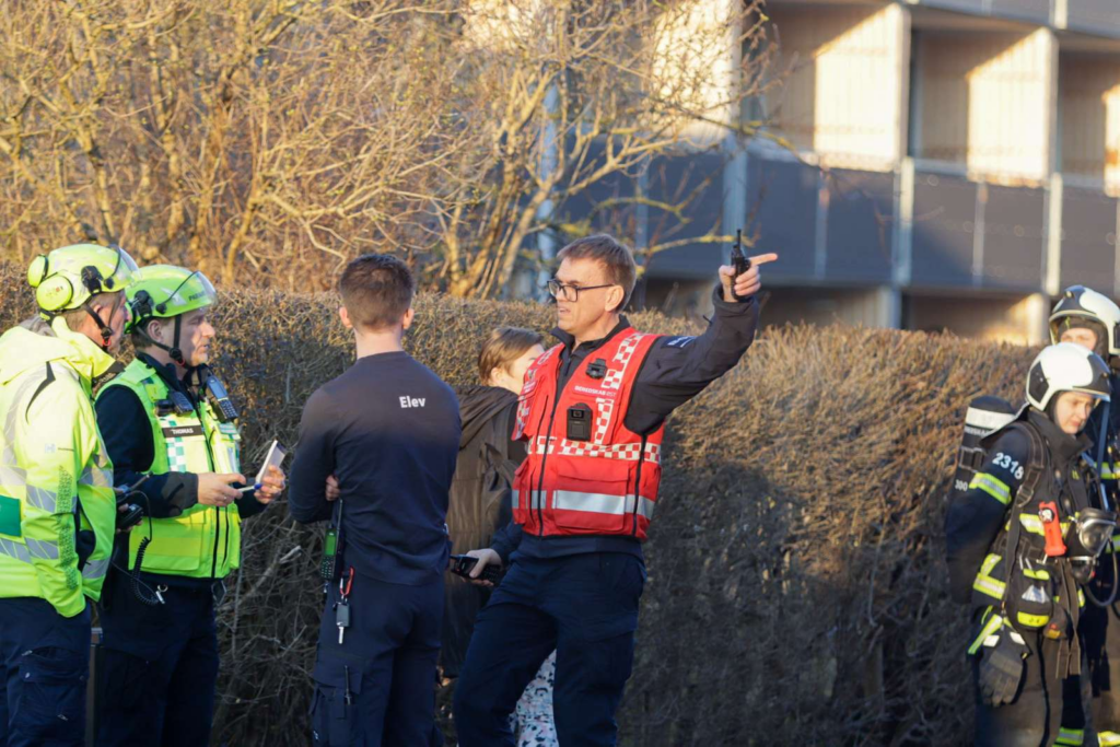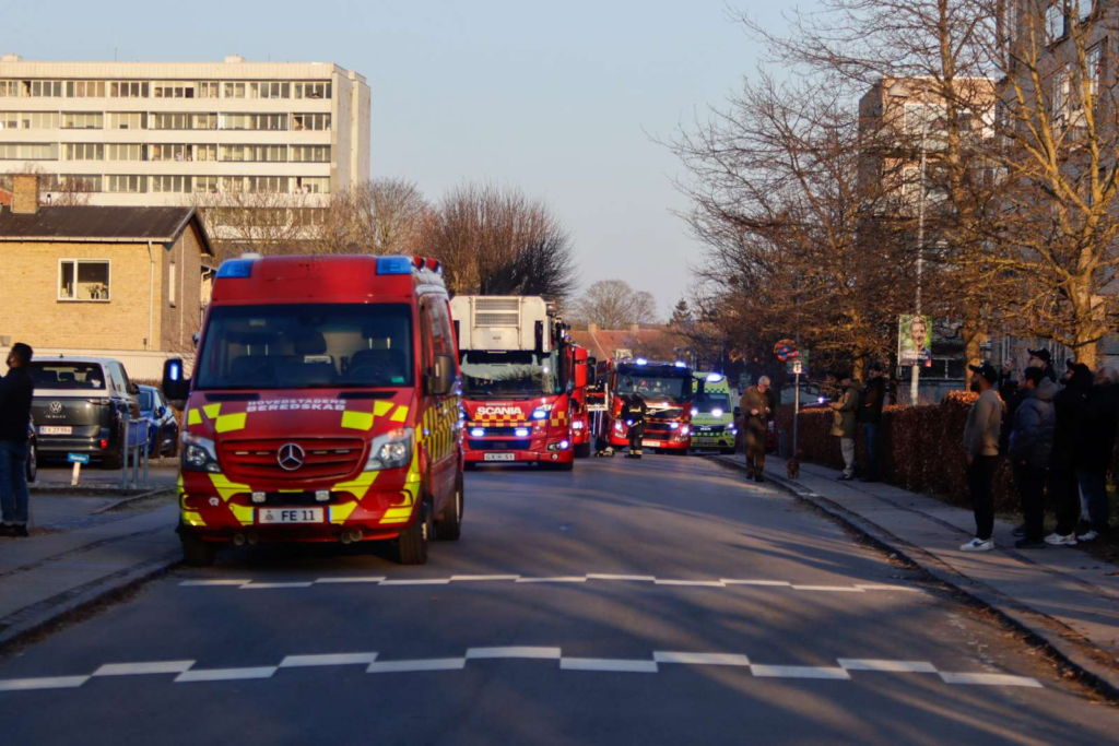 Alt fra akutlægebil, ambulancer, et utal af brandbiler og politibiler er fremme.