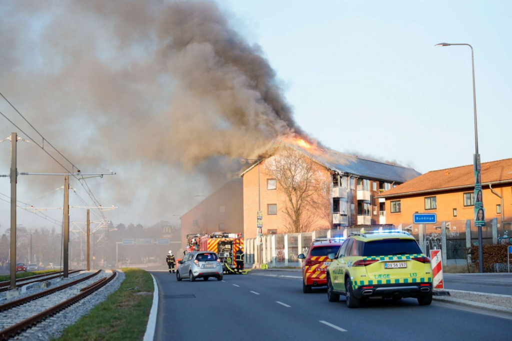 Branden foregår i en etagejendom i Tinghøjparken i Søborg, som ligger i Gladsaxe Kommune.