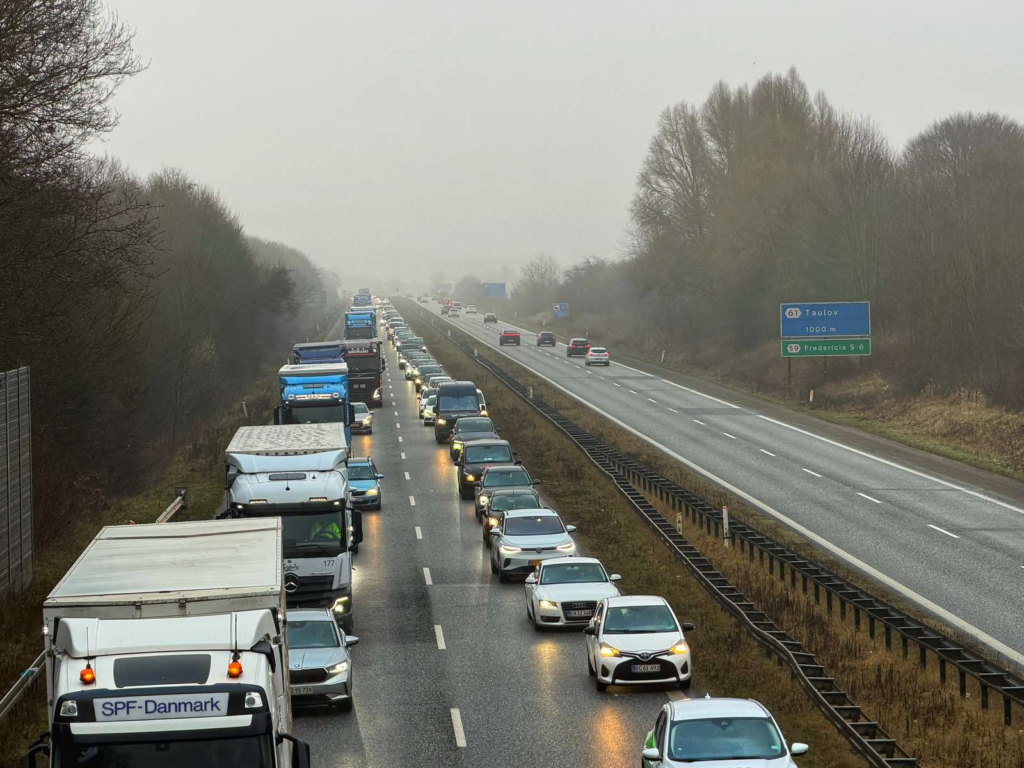 Uheldet er sket på E20 Taulovmotorvejen i retning fra Fredericia mod Kolding, mellem afkørsel 61 Taulov og Kolding.