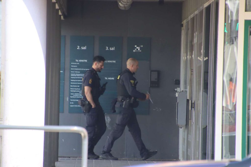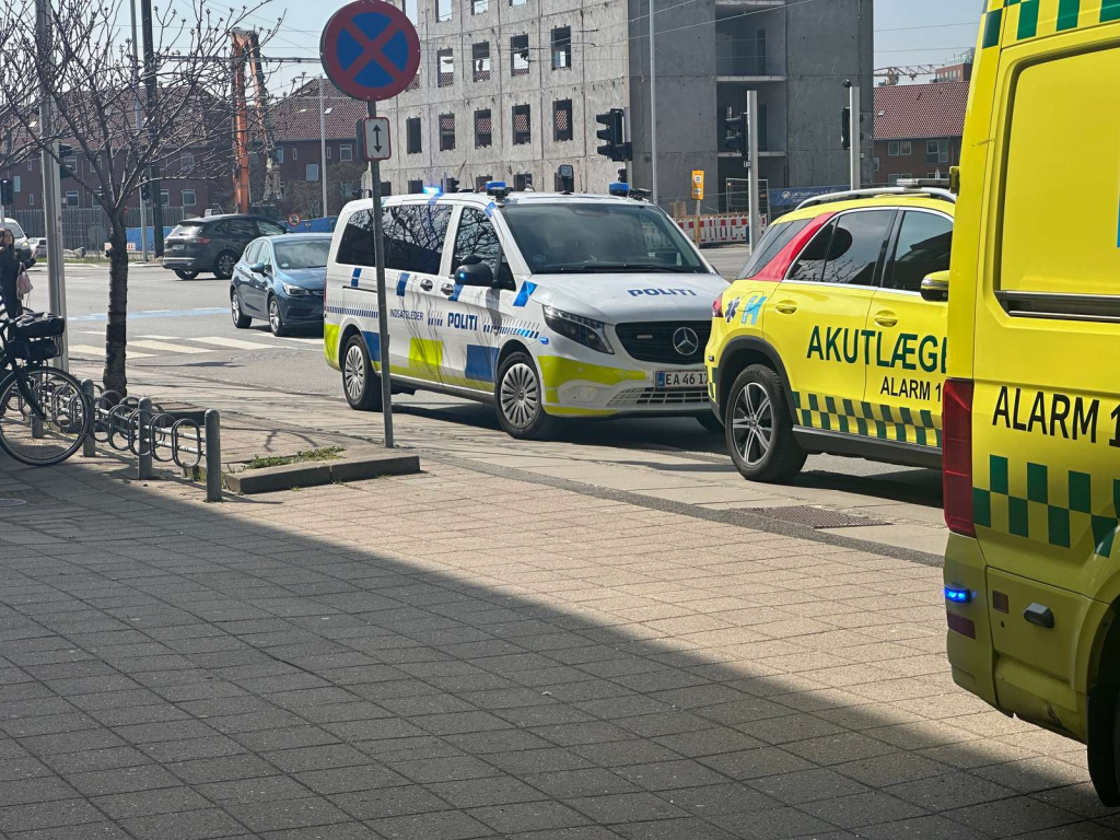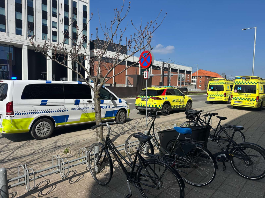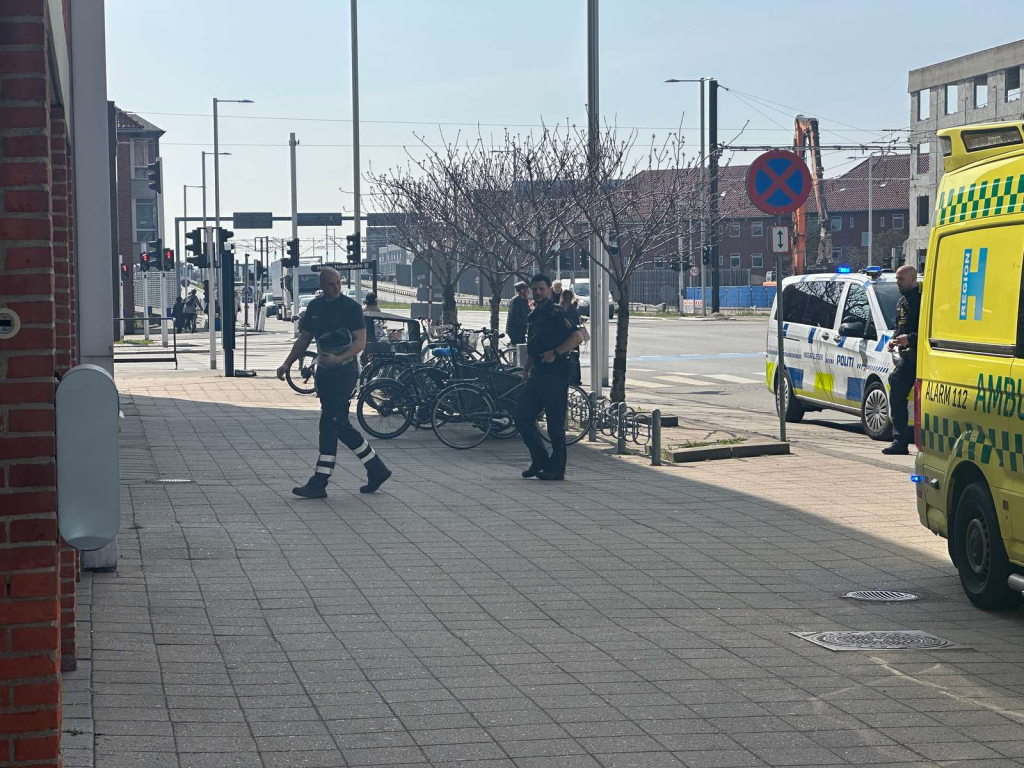 Politi og redningspersonale er fredag ved middagstid markant til stede i et område nær et større kryds. Ifølge Presse-fotos.dk’s udsendte ses politiet bevæge sig ind ad døren til en opgang.