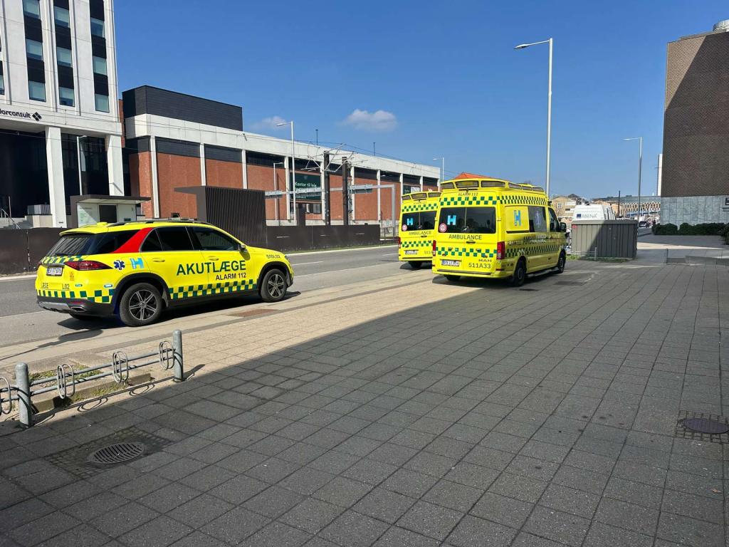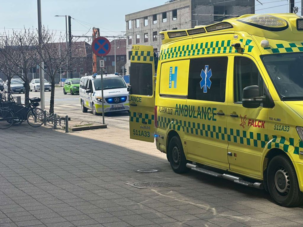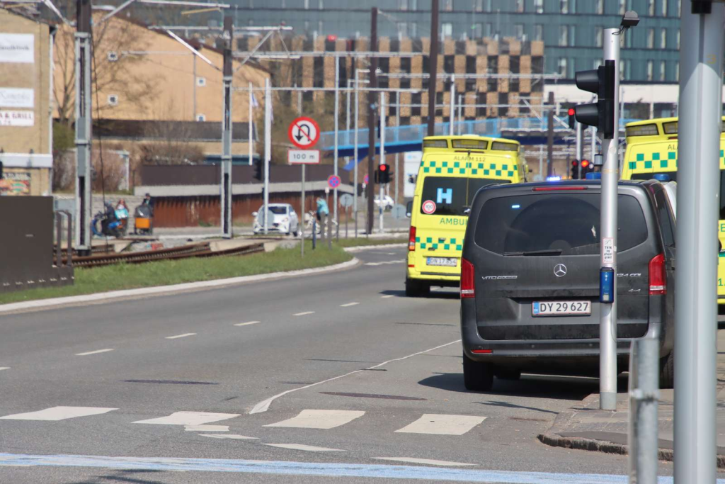 Ambulancer, lægebil og politiets indsatsleder er fredag middag til stede i et område nær et større kryds.