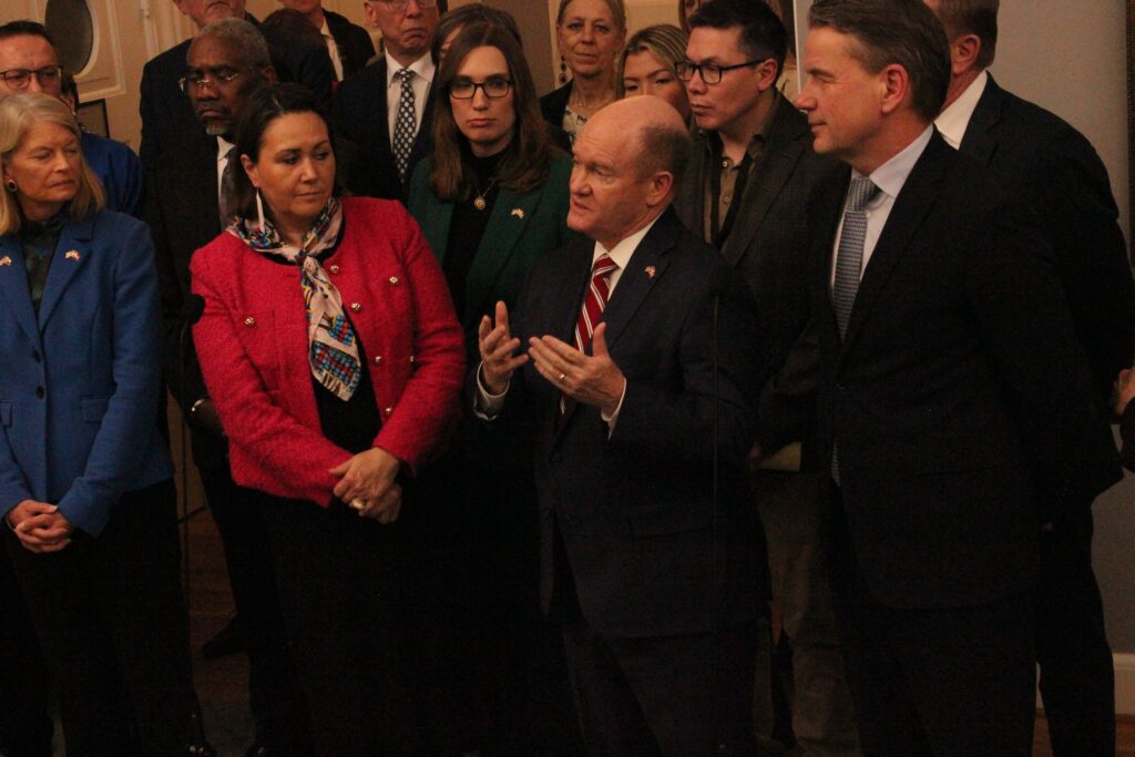 Også den Demokratiske senator Chris Coon var klar i spyttet til dagens pressemøde.