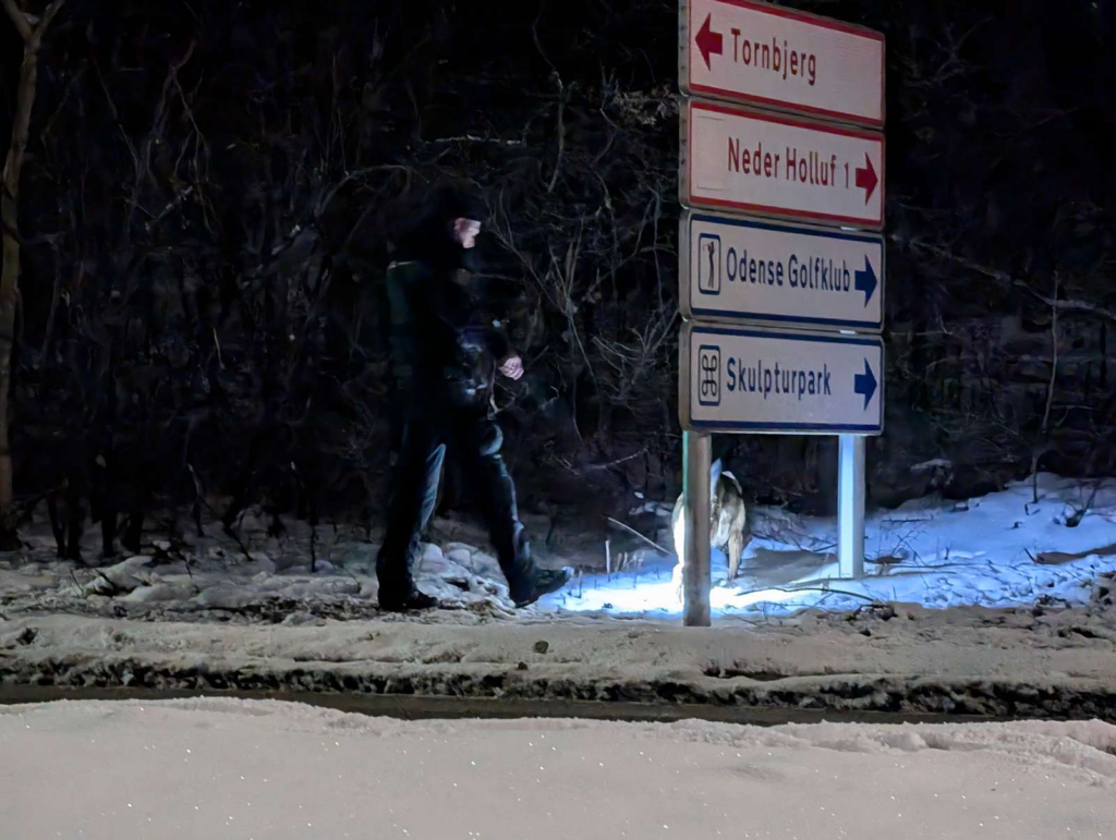 Politiet går rundt i området og søger med deres hundepatruljer, mens folk altså ikke må komme inden for afspærringerne.