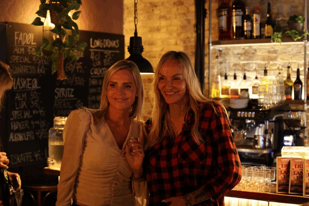 Aftenen bød på både musik og fællessang, da der blev spillet op til dans med Islands Brygge-sangen, mens gæsterne – blandt dem, Lone og Niller kendt fra Familien fra Bryggen’, Janni Ree og tidligere Haraldsborg-ejer Peter Rex – skålede og hilste på hinanden i den tætpakkede café.