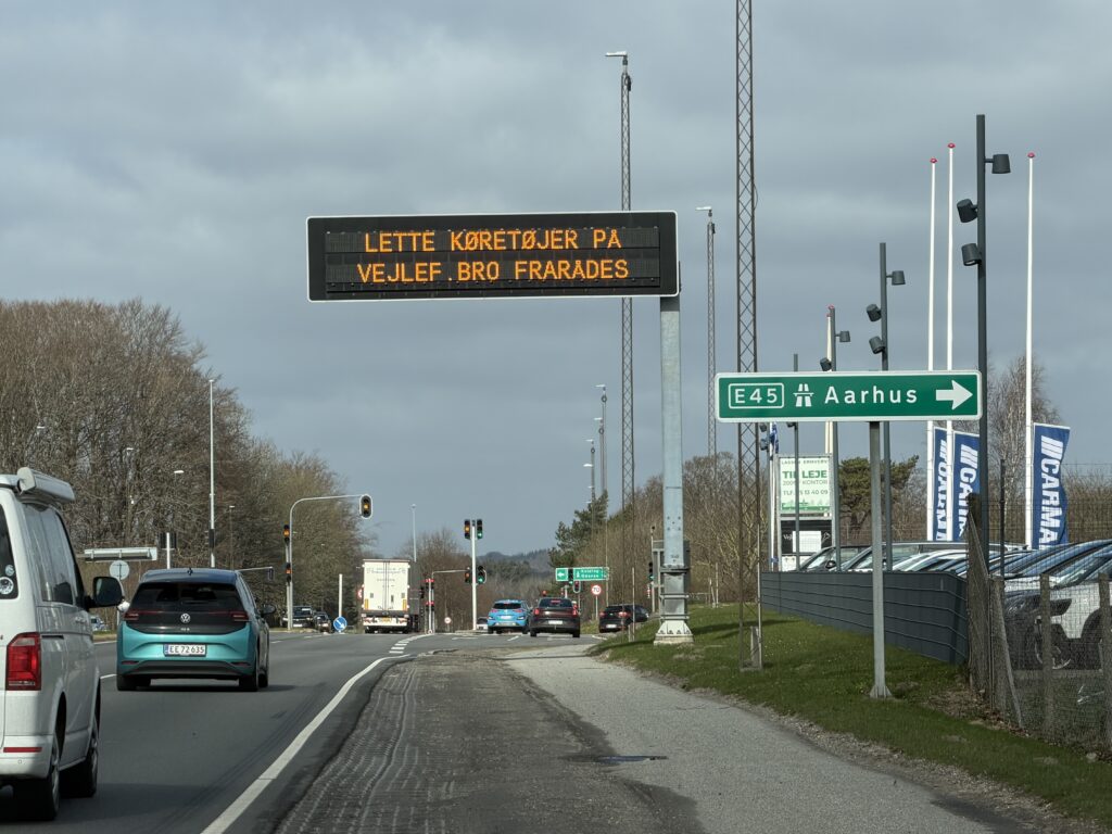 På et skilt tæt på broen står det nemlig, at 'lette køretøjer på Vejlefjordbroen frarådes'.