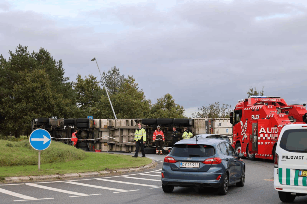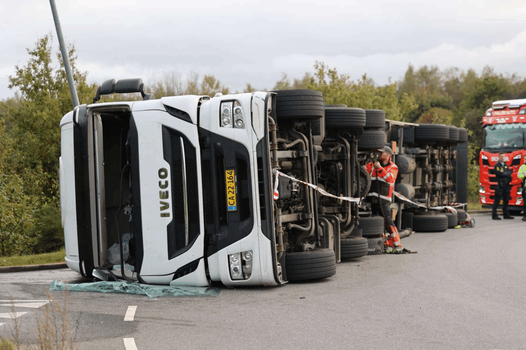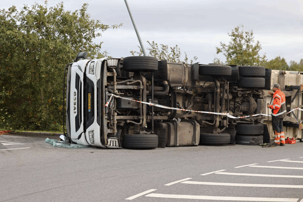 Man er endnu ikke bekendt med, hvorfor lastbilen er væltet.