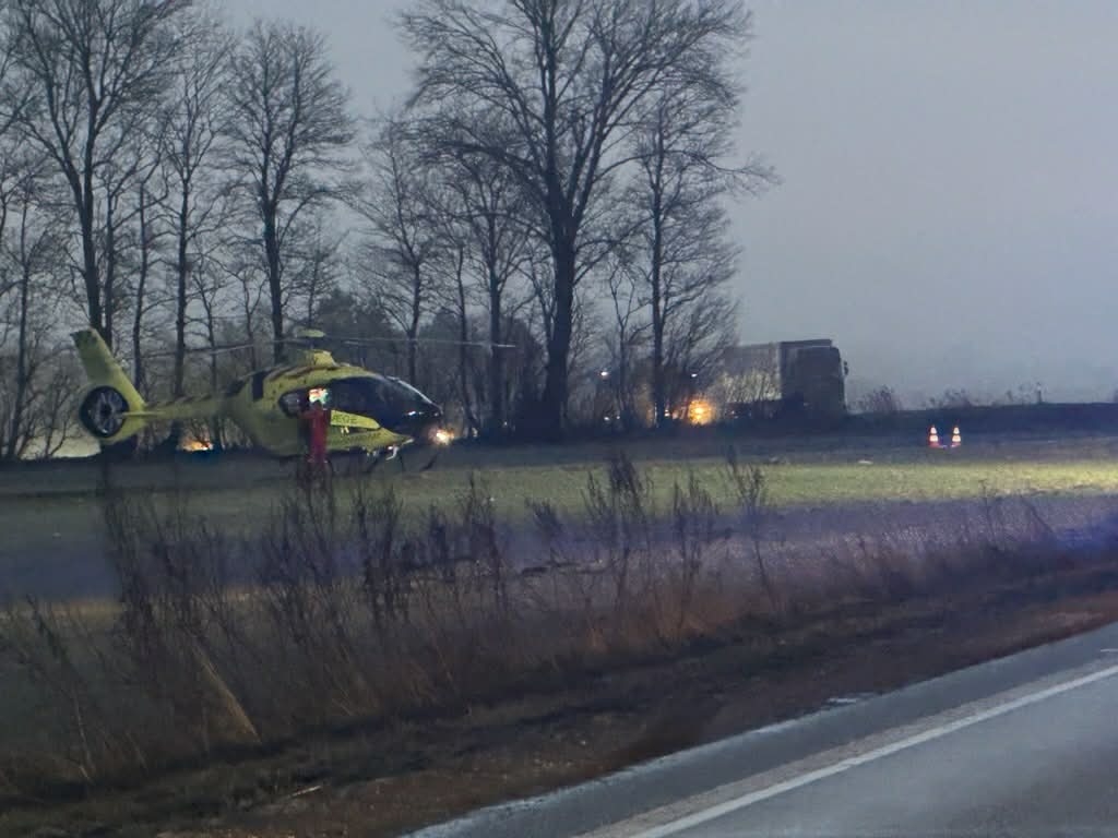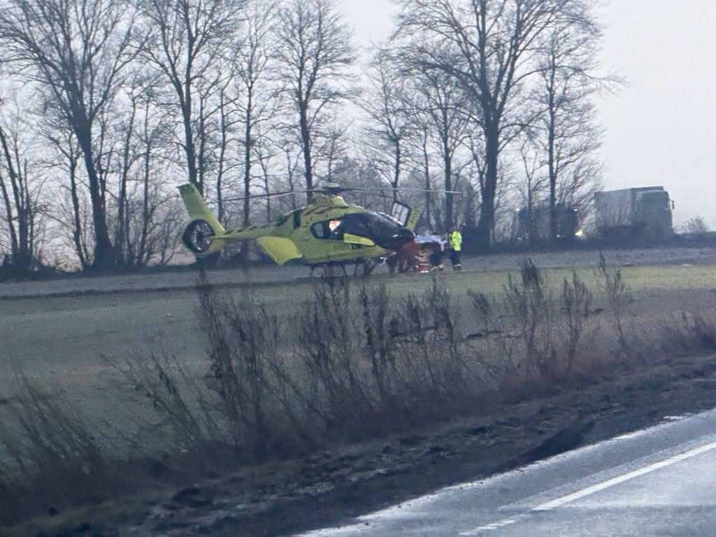 Et alvorligt morgenuheld spærrede vej i timevis. En mand er fløjet til hospitalet.