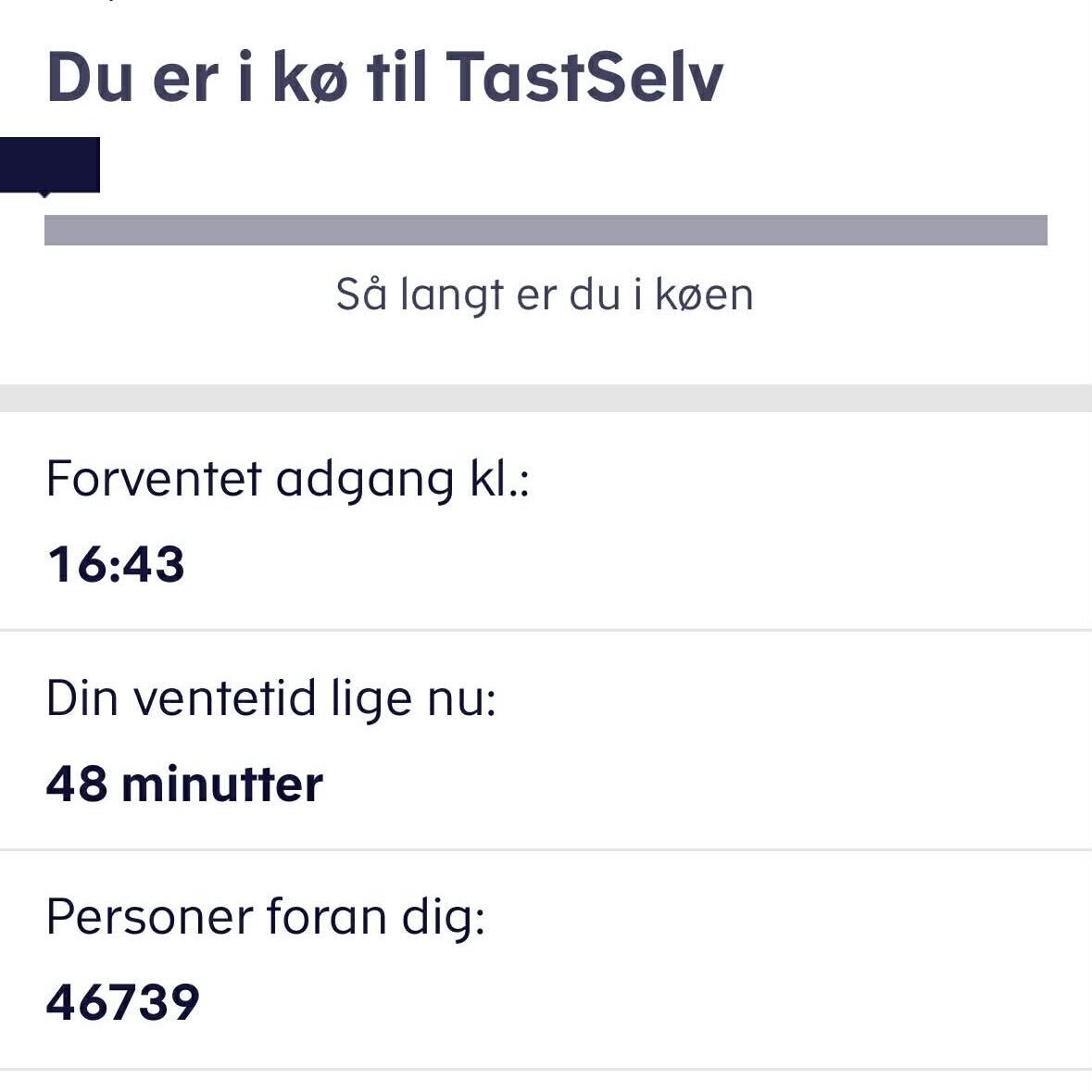 Da Presse-fotos.dk tjekkede, var ventetiden oppe på 48 minutter, og 46.739 danskere sad i kø.