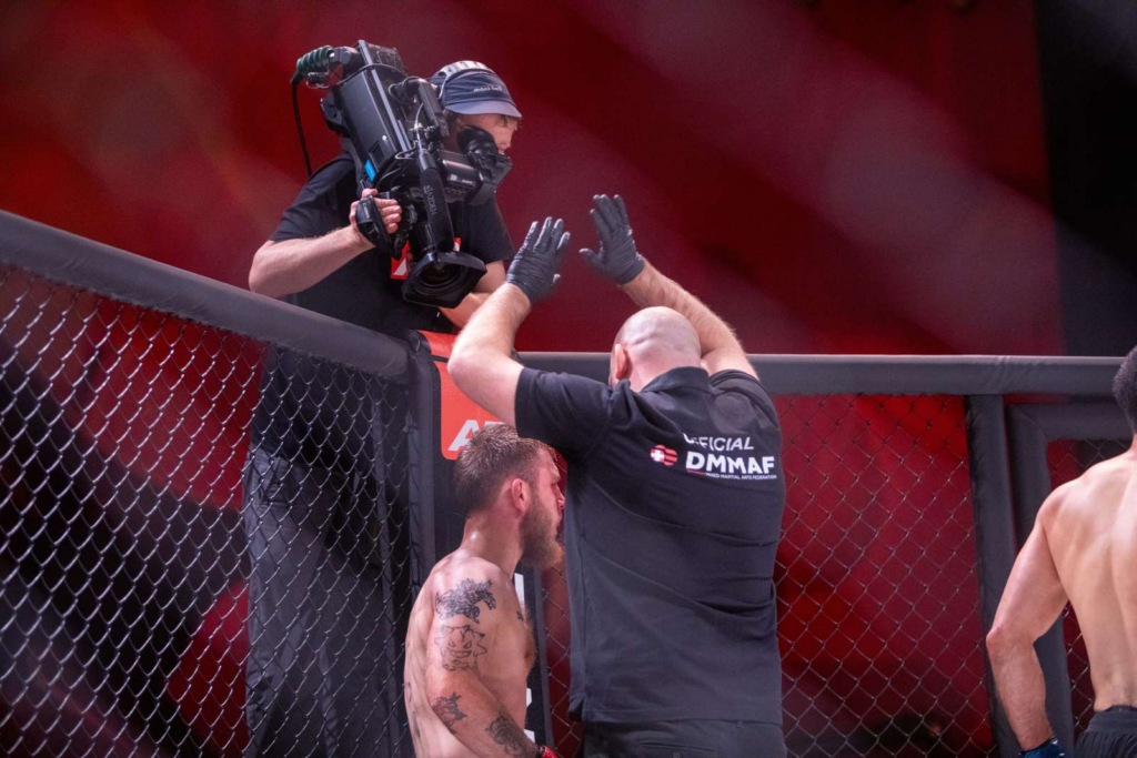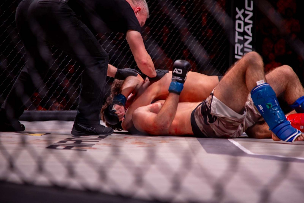 Bilal Boukraa (Norge) besejrer Dzhabrail Mezhidov (Rusland) via submission (rear naked choke) efter to minutter og 52 sekunder af tredje runde