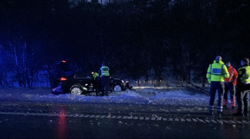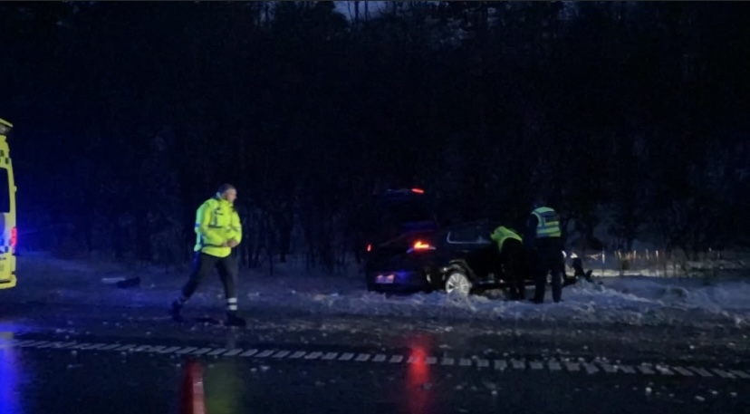 På billeder fra Presse-fotos.dks udsendte ses en bil være kørt i grøften, hvor redningspersonale står omkring bilen.