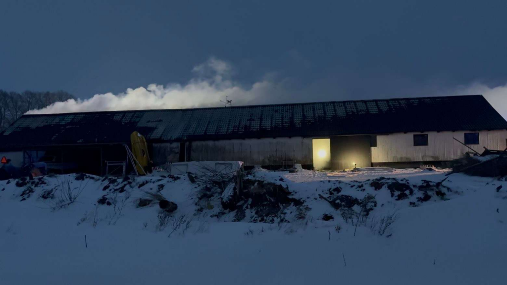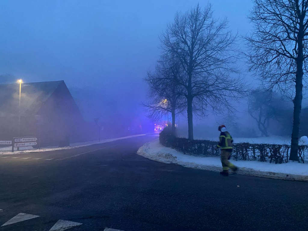 Røgen ligger tungt over området, og situationen har tiltrukket opmærksomhed fra forbipasserende.