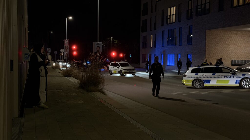 ’Politi er massivt til stede. Det ligner, der har været ballade herude,’ lyder det fra fotografen.