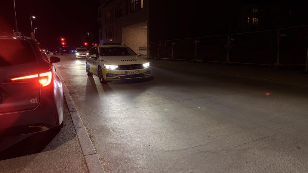 Ifølge Presse-fotos.dks fotograf på stedet tyder meget på, at der har været en form for ballade i området, og politiet er rykket talstærkt ud.