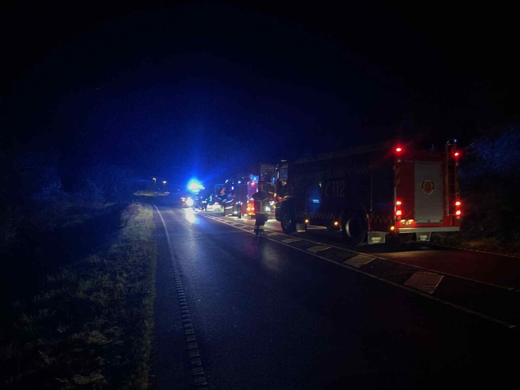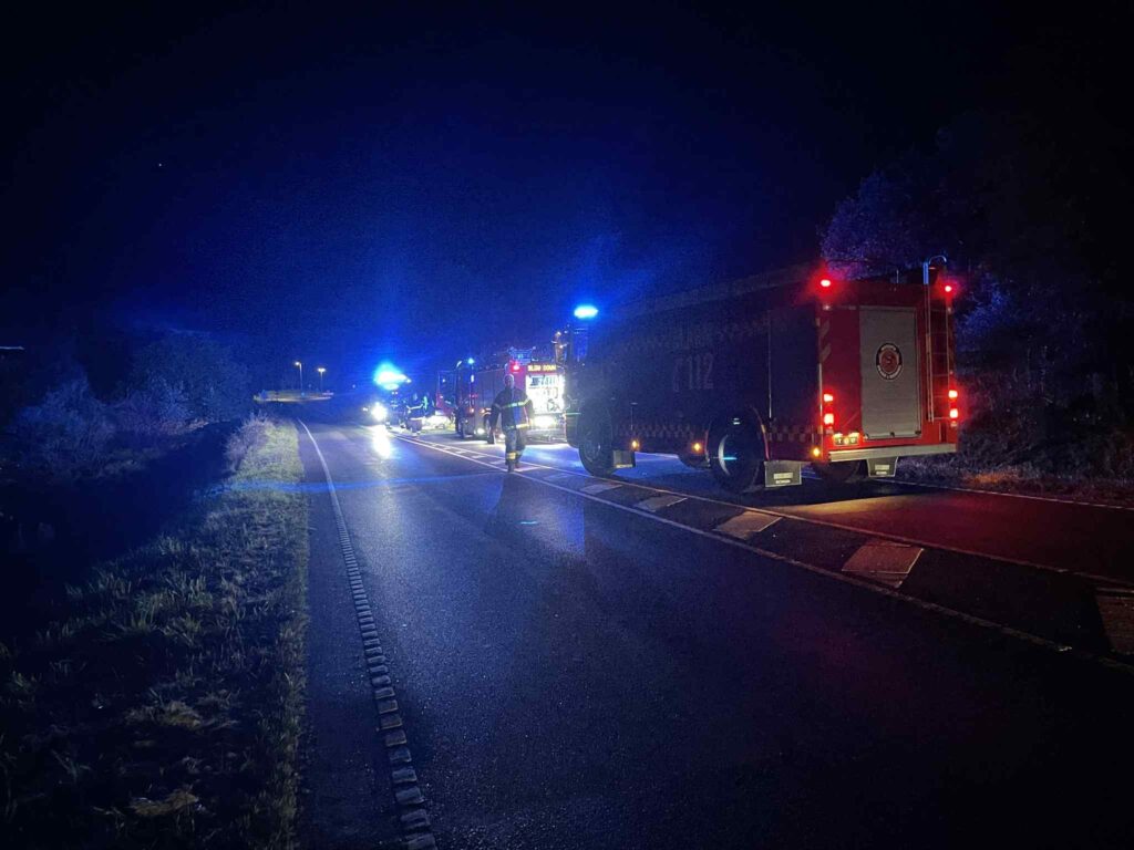 Billeder fra stedet viser, hvordan udrykningskøretøjerne nu er fremme på landevejen.