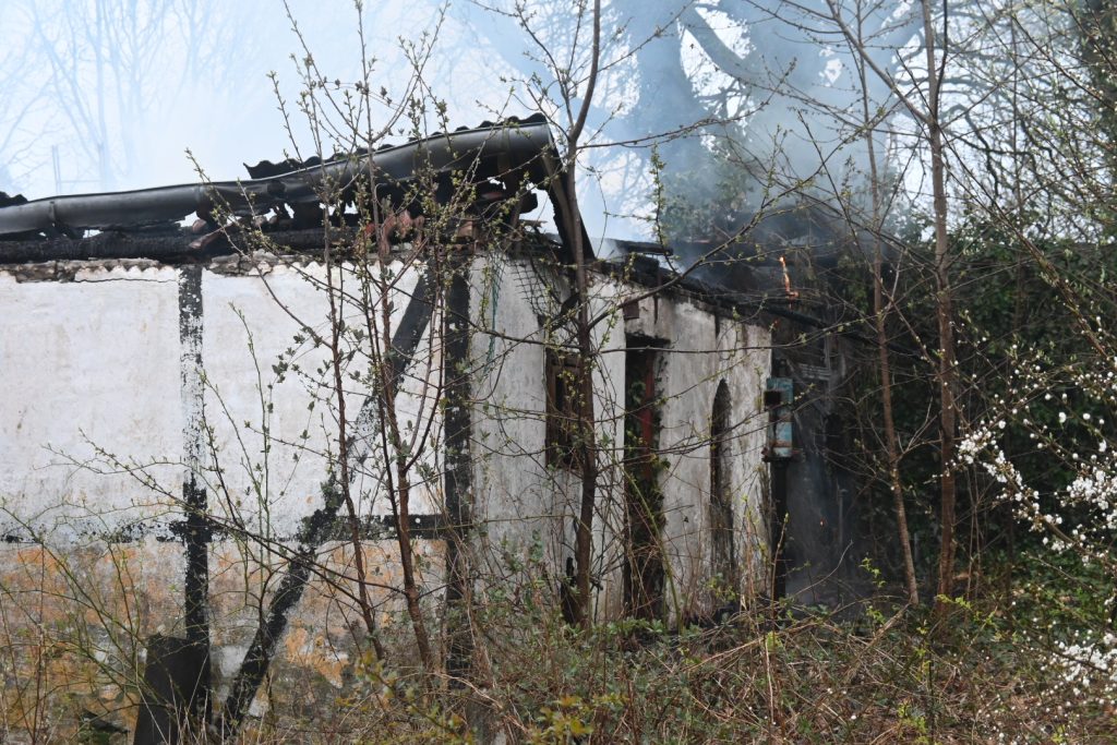 På billederne ligner det desuden, at der kommer røg ud fra et tætliggende hus.