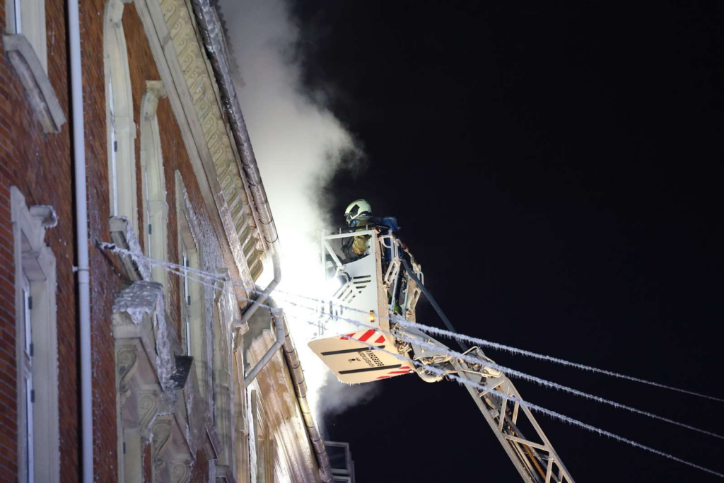 – Brandvæsenet er stadig ved at efterslukke derude. Der er stadig ild, så vi har ikke været inde i lejligheden endnu, siger han.