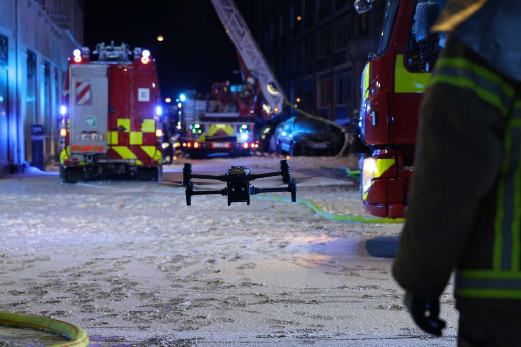 Onsdag aften spærrede politiet for al trafik på Amagerbrogade mellem Frankrigsgade og Englandsvej på grund af branden. Der er stadig spærret, siger Rasmus Nielsen.