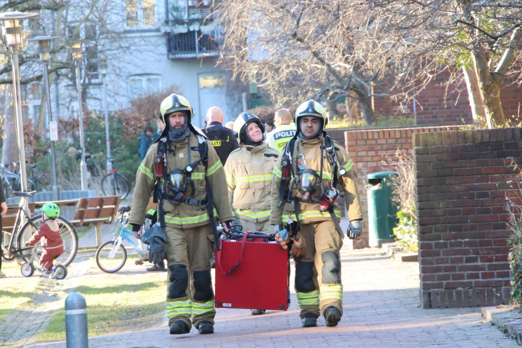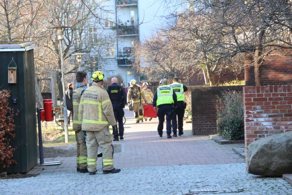 Ifølge meldinger fra stedet er der tale om brand i en lejlighed, og redningsmandskabet bevæger sig ind og ud af opgangen i forbindelse med indsatsen.