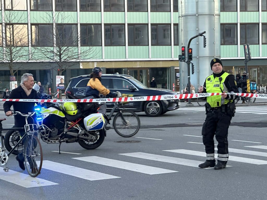 Indsatsen foregår på Gothersgade, hvor strækningen mellem Nørreport Station og søerne i København i øjeblikket er spærret for trafik.