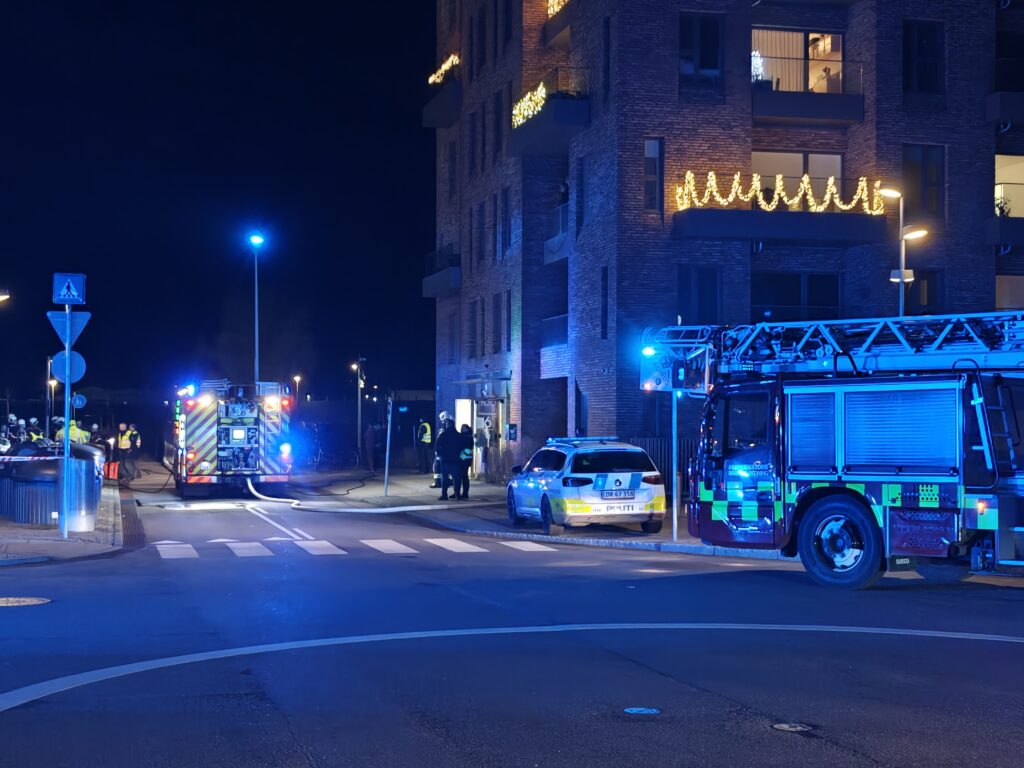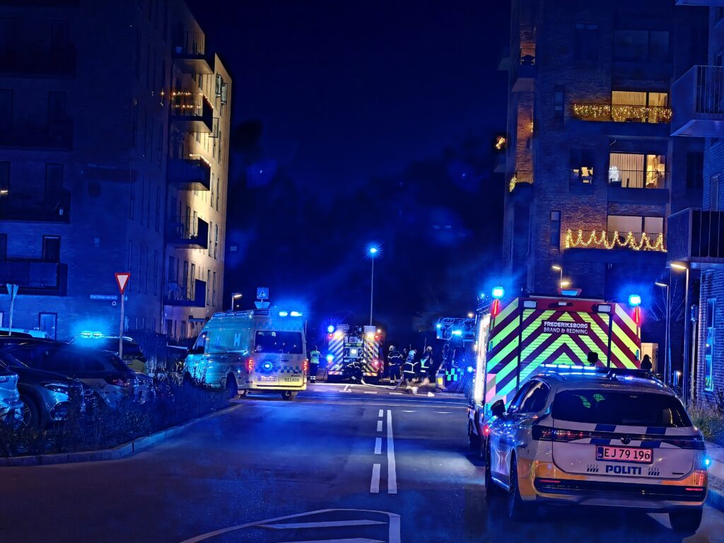 Mandskab og køretøjer fra flere brandstationer er tilkaldt til en alvorlig brand, hvor også politiet og ambulancepersonale er fremme. Presse-fotos.dks udsendte beretter om voldsomme scener.