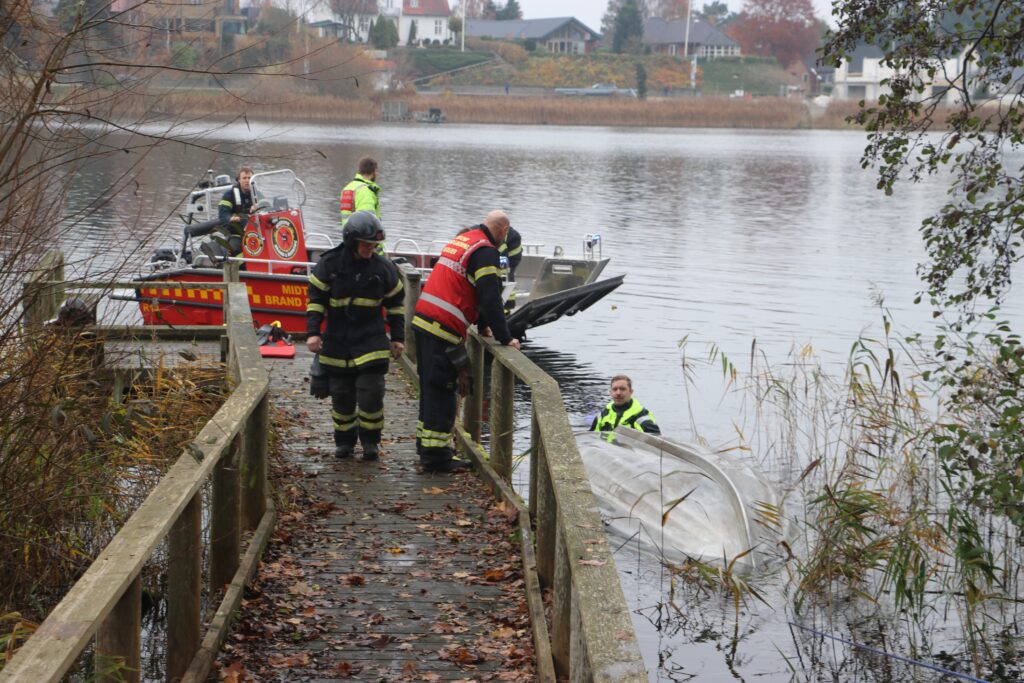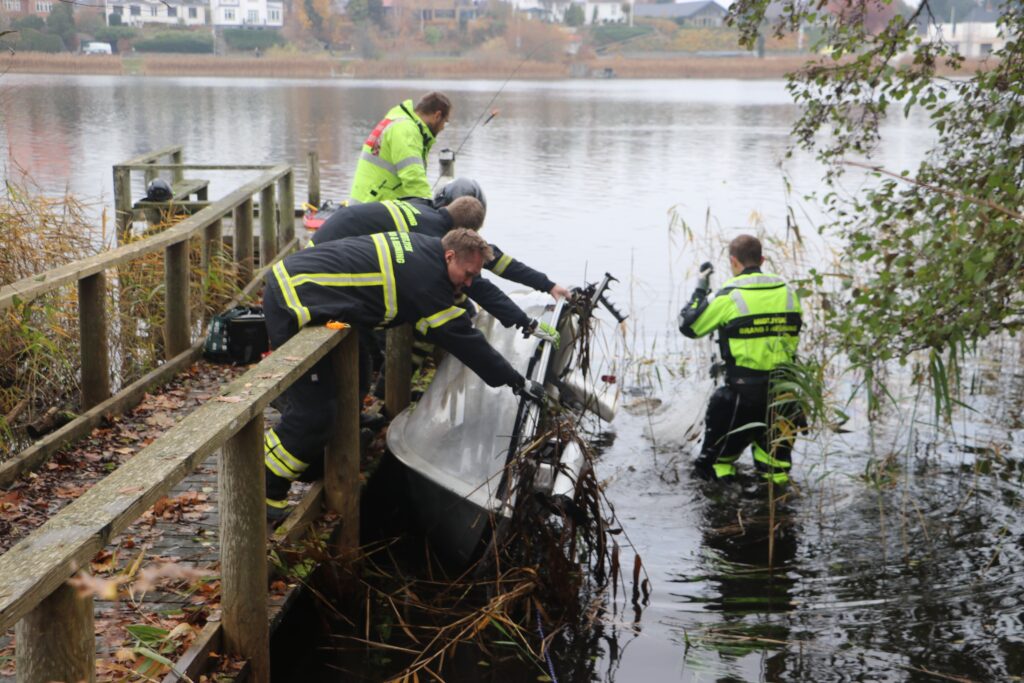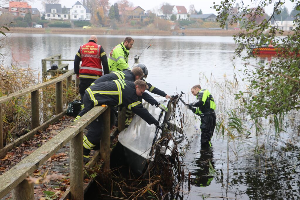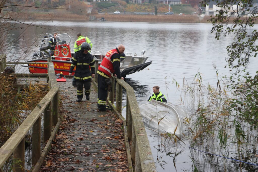 Derfor rykkede Brand & Redning massivt ud til stedet, hvor en båd nu er ved at blive bugseret ind på land. Båden vender på hovedet.
