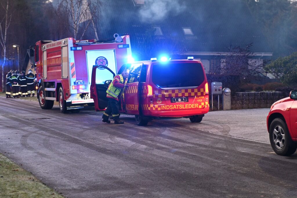 Brandvæsenet er med flere udrykningskøretøjer rykket ud til en villavej, hvorfra der kommer meldinger om en brand i et hus.