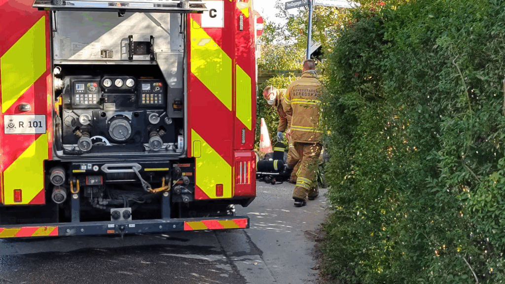 Billeder fra området viser, at brandfolkene både har fundet røgdykkerapparater og masker frem.