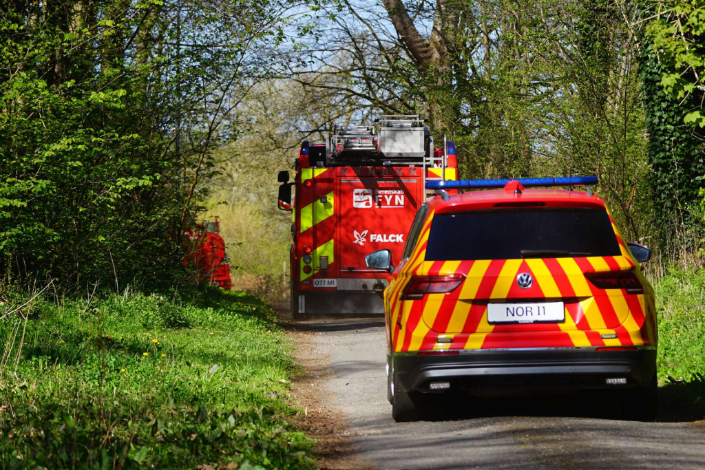 ‘Brandvæsnet har en tankvogn samt en indsatsleder og en stigevognen herude.’