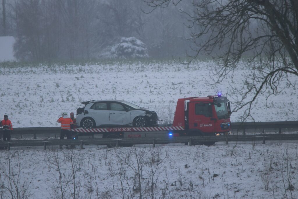 Efterfølgende er bilen blevet fragtet væk af Falck. Det viser billedet fra ulykkesstedet.