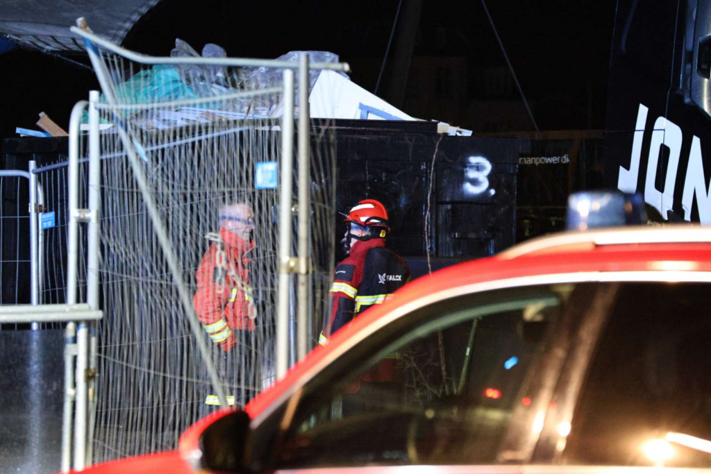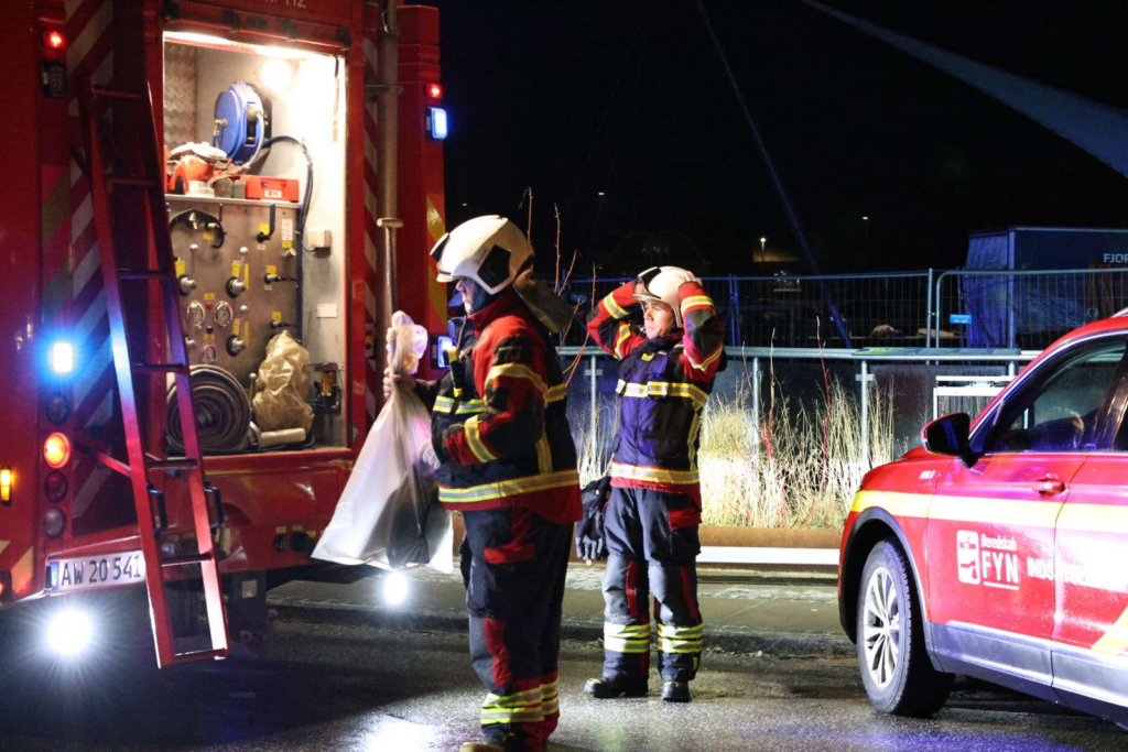 Billeder fra stedet viser, at brandvæsnet og en indsatsleder arbejder på stedet.