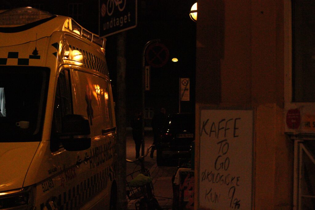 Opdatering: Presse-fotos.dk har efter artiklens publicering været i kontakt med Københavns Politi. Der har ikke været tale om et knivstikkeri, men i stedet et gaderøveri, hvor en person er blevet truet med kniv. Hændelsen har fundet sted 00:39.