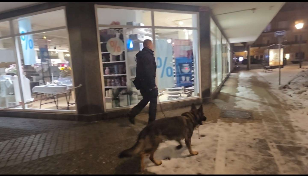Politiet er mandag aften massivt til stede, hvor en guldsmed er blevet udsat for røveri.