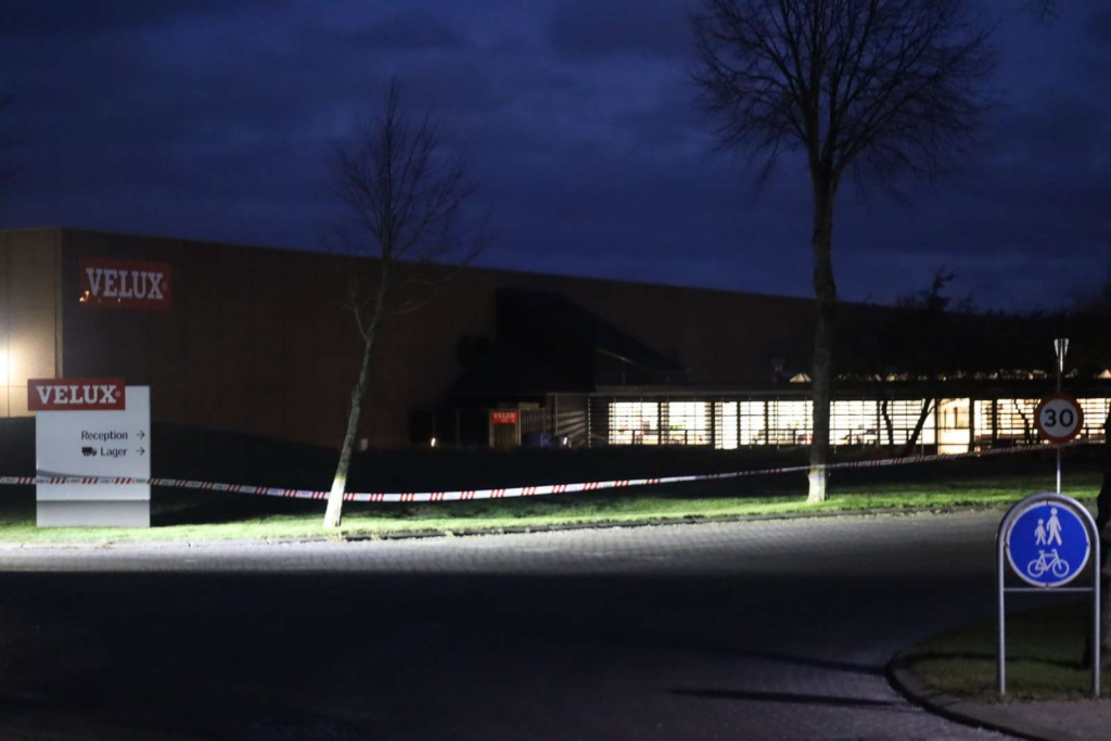 En udsendt fra Presse-fotos.dk oplyser, at et område omkring Velux Vinduer er afspærret