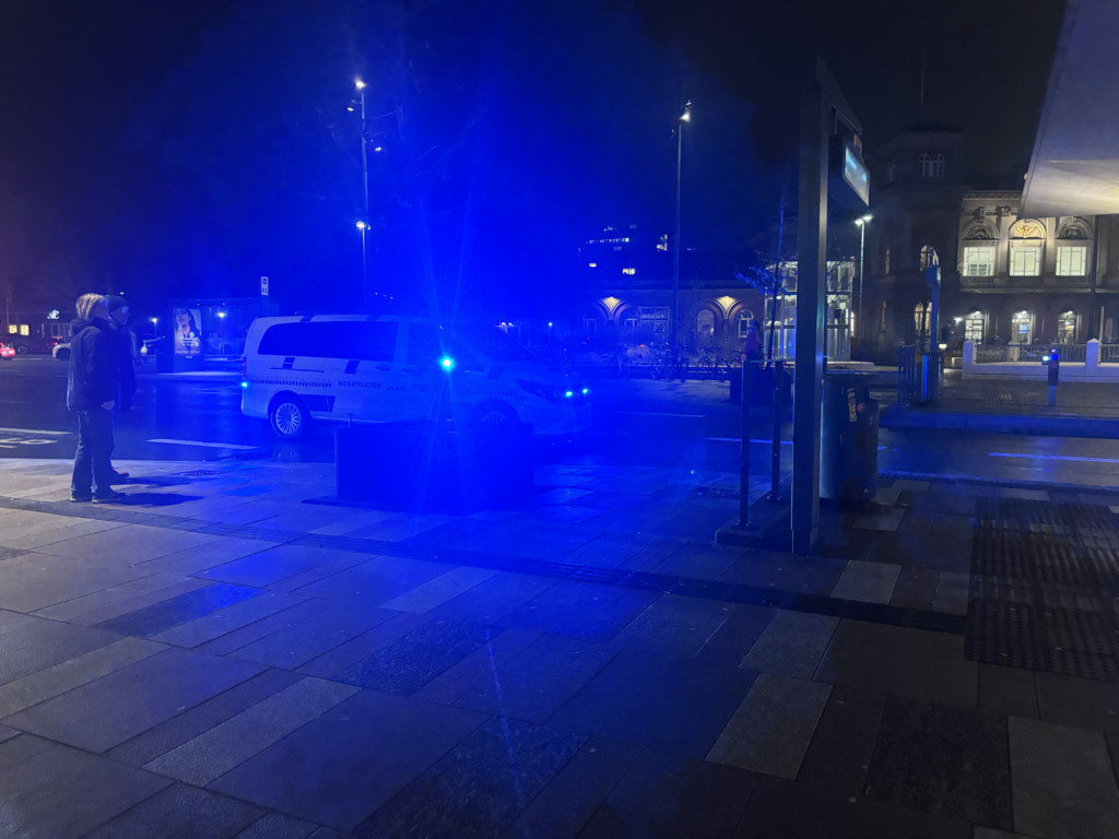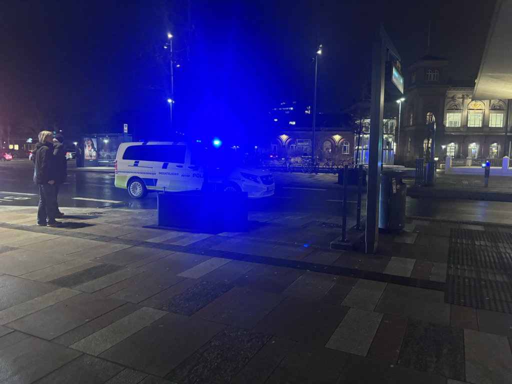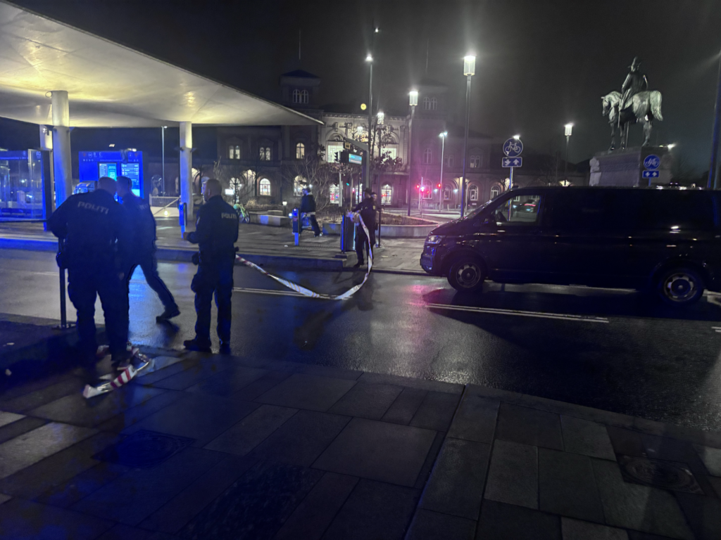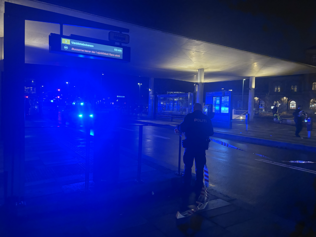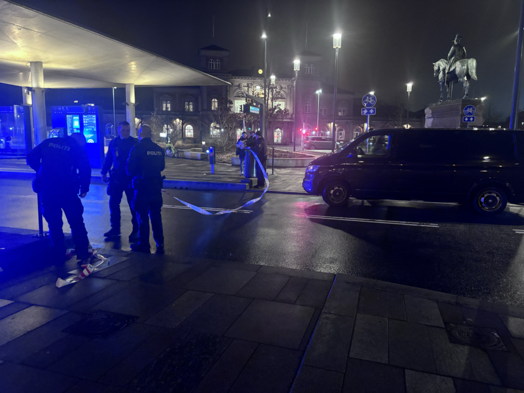 Et massivt politiopbud lammede John F. Kennedys Plads i Aalborg fredag aften, hvor bus holdepladsen blev helt afspærret for gennemkørsel.