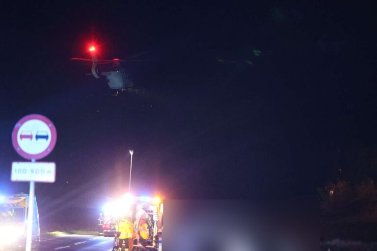 Presse-fotos.dk var til stede kort efter ulykken, hvor en lægehelikopter landede på vejen