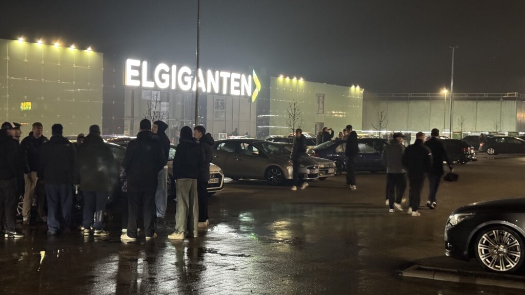 Billeder fra Presse-fotos.dks udsendte viser, hvordan en parkeringsplads foran Elgiganten samt en ved Storcenter Nord er helt proppet af bilister, der er mødt op.