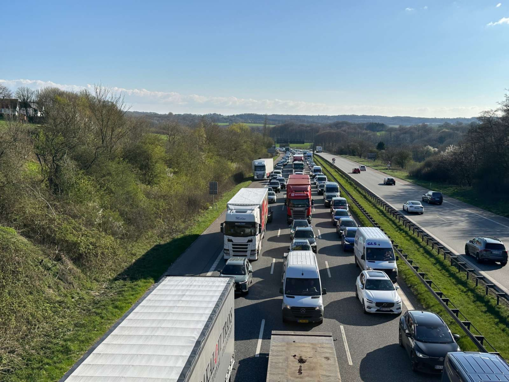 I den modsatte retning er der samtidig opstået en såkaldt kiggekø. Det betyder, at der også er kø og forlænget rejsetid i 30 til 60 minutter her.