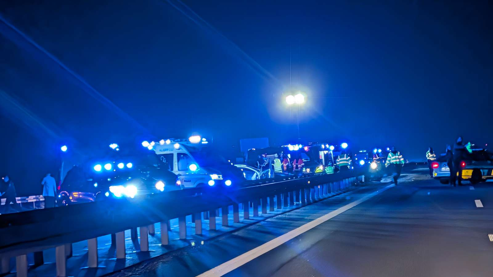 Arbejdet på stedet fortsatte gennem store dele af natten, mens teknikere dokumenterede uheldsstedet, og redningsmandskab ryddede motorvejen.
