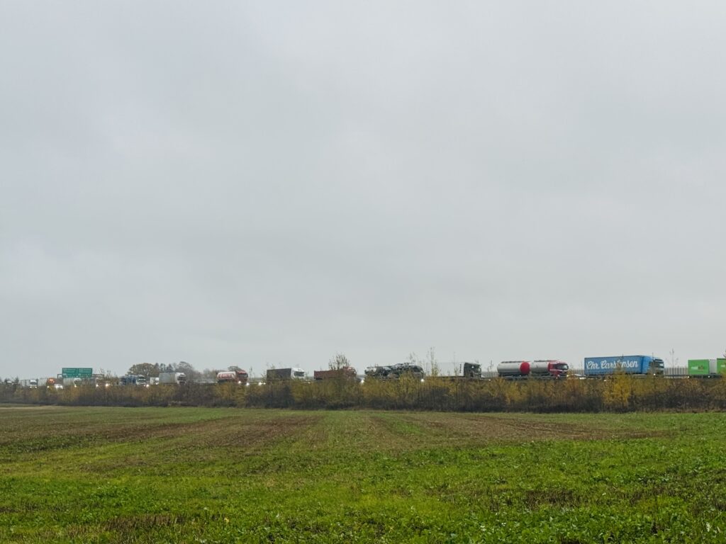 Det har skabt en del kø på strækningen, fordi det højre spor er blevet spærret.