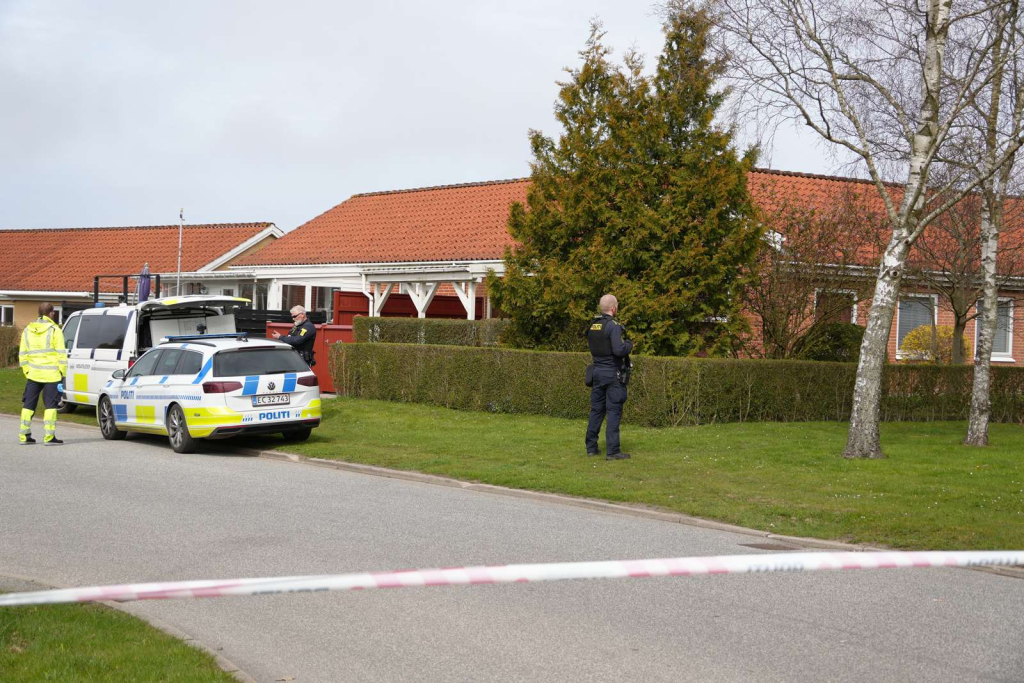 Det er på Øresundsvænget i Skrillinge ved Middelfart, at politiet er massivt til stede.