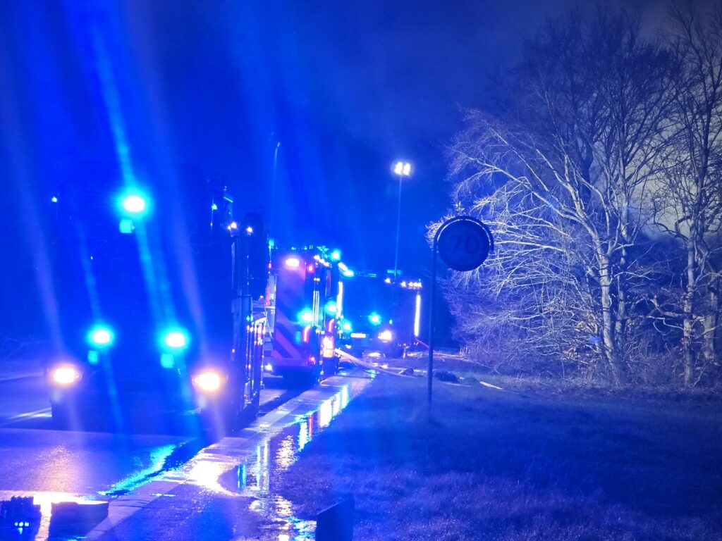 Politi og brandvæsen rykkede massivt ud til landejendommen, der stod i flammer.