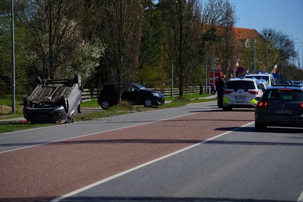 Billeder Østre Ringvej viser i den forbindelse, at en af de forulykkede biler ligger på taget efter uheldet.