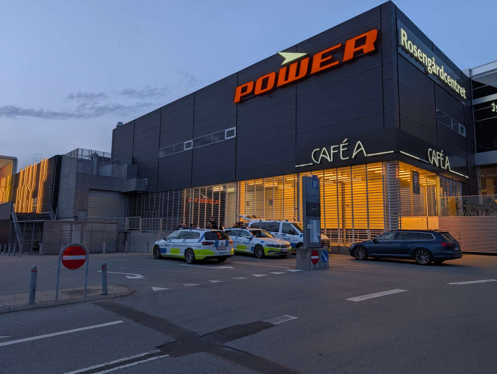 ‘Inde i centeret går omkring ni betjente med hjelm og maskingeværer rundt ved Føtex. Uden for har patruljebilerne fordelt sig ved flere indgangen. Centeret er ikke evakueret,’ skriver TV 2 Fyn.