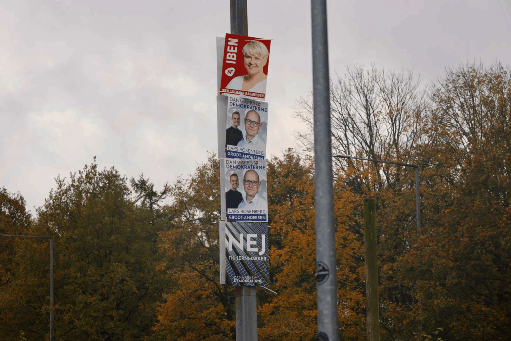 Billeder fra både Herlev, Skjern, Kolding og Silkeborg vidner om, at lygtepæle over det meste af Danmark det næste stykke tid vil være plastret til med papplakaterne.