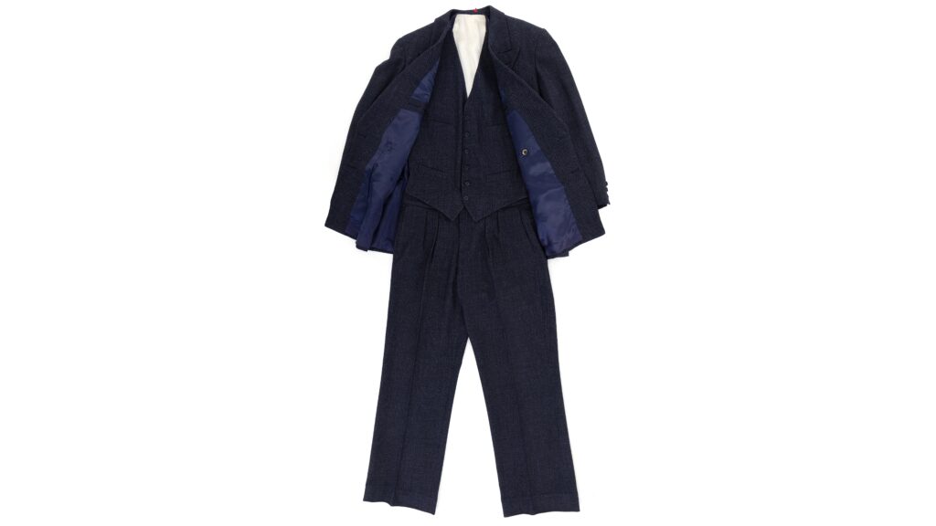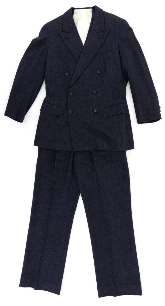 Der er tale om et blåt dobbeltradet jakkesæt med fornemme detaljer udført hos skræddermester B. Korzen.
